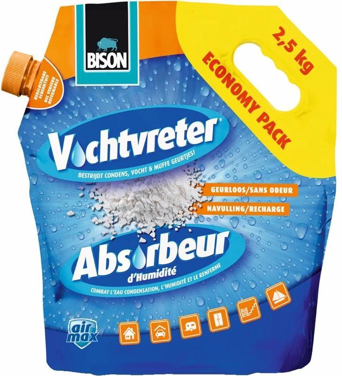De Bison Vochtvreter Losse Kristallen zijn geschikt voor het navullen van de Bison Vochtvreter. Deze werkt tegen vocht in huis.
