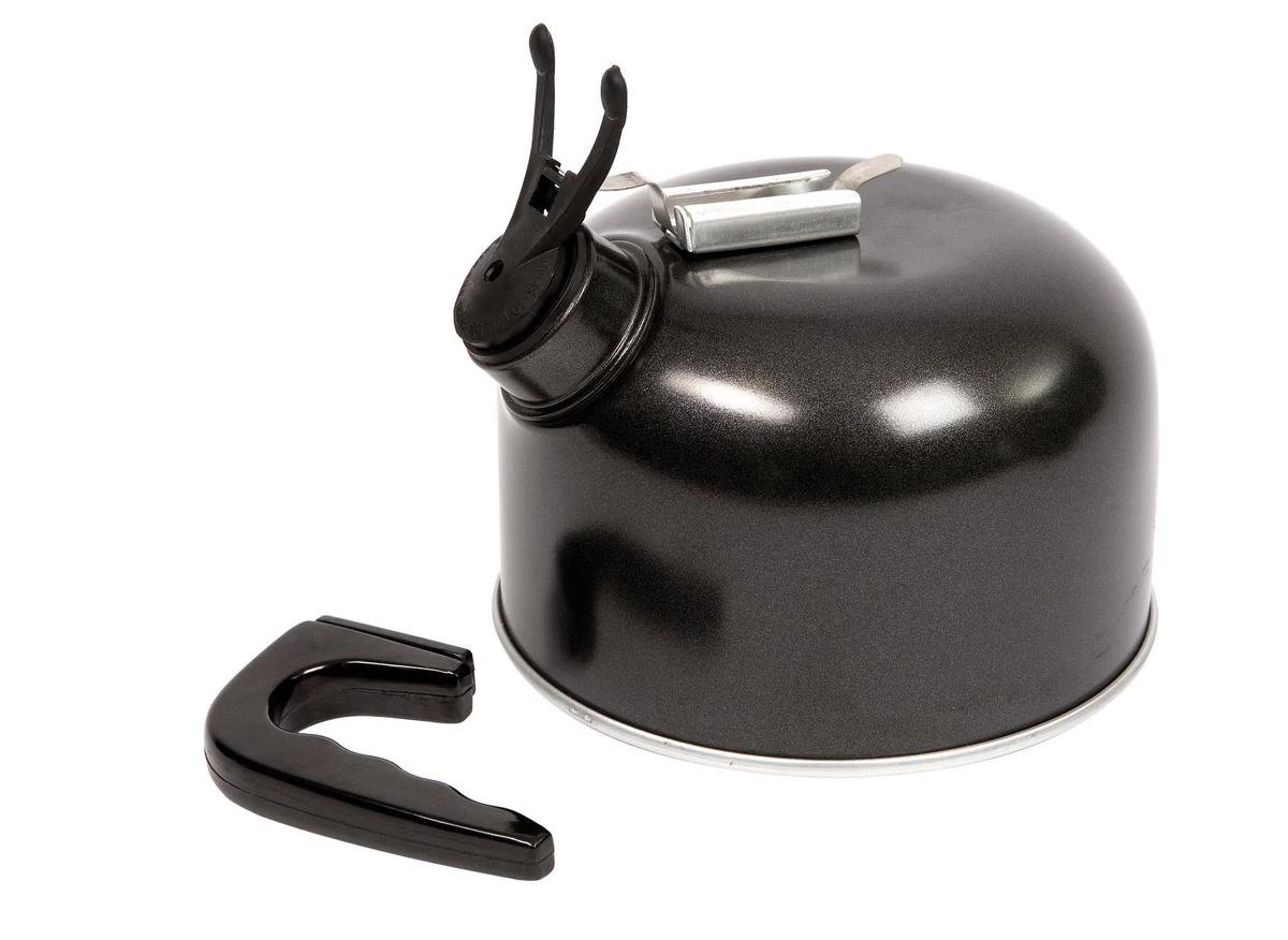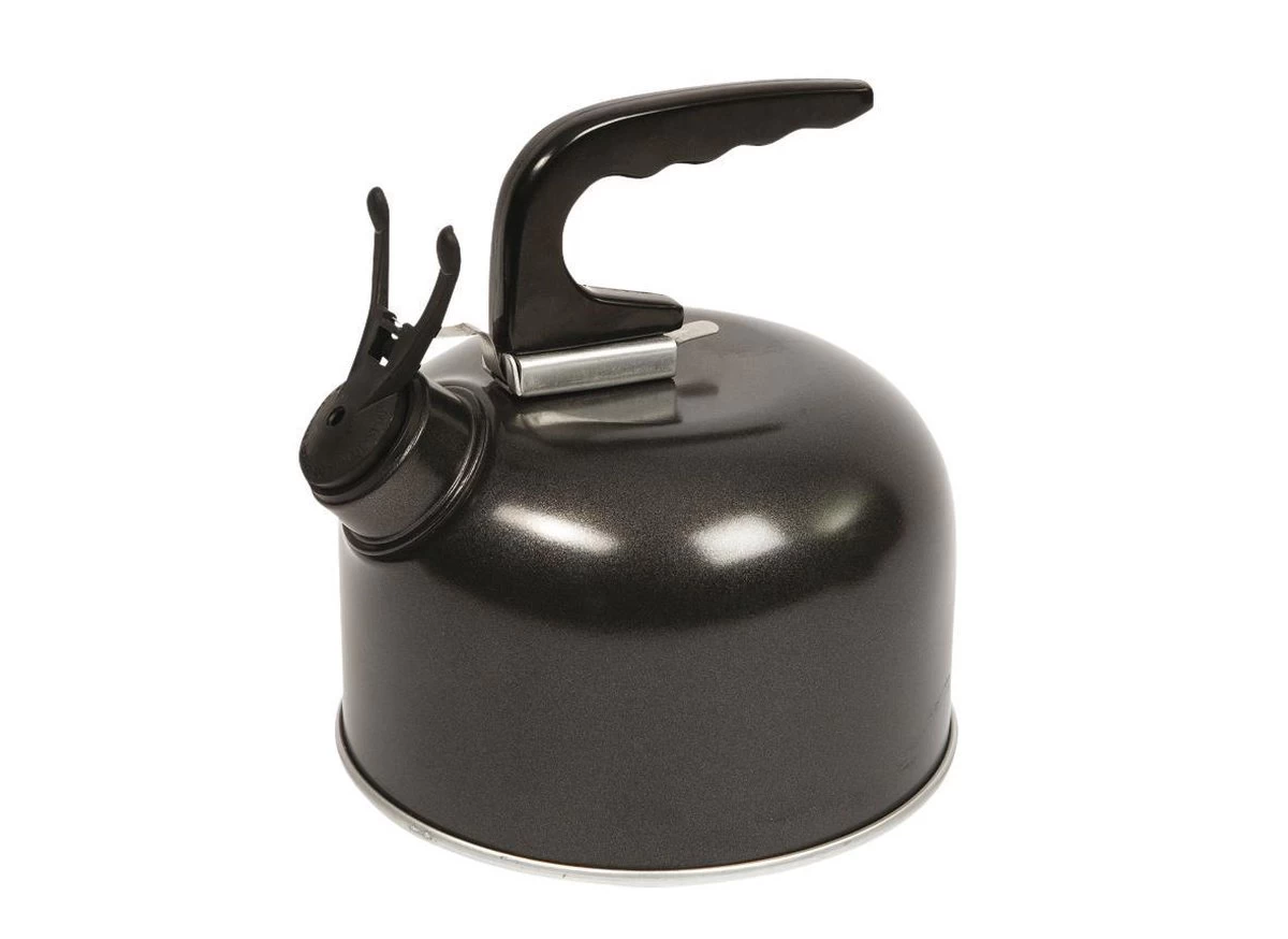 Een extra compacte fluitketel. Gemaakt van aluminium. Deze ketel is extra compact door de afneembare handgreep en de wegklapbare fluitdop.