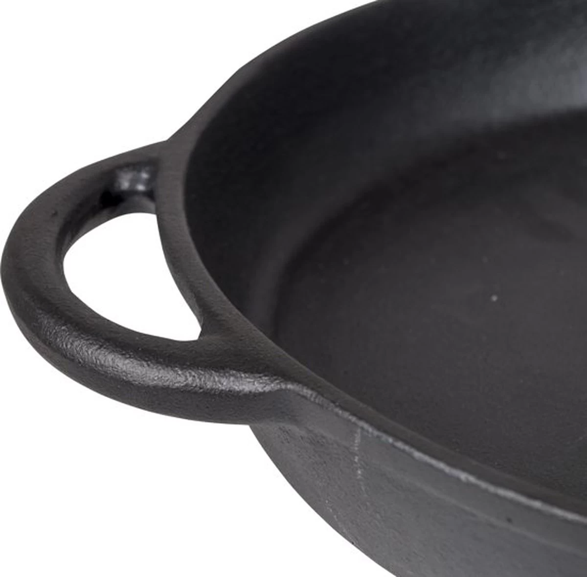 Een traditionele en multifunctionele gietijzeren koekenpan. Deze koekenpan is uitermate geschikt voor het bereiden van maaltijden boven open vuur of op hete kolen. Het massieve gietijzer zorgt voor een optimale warmteverdeling.