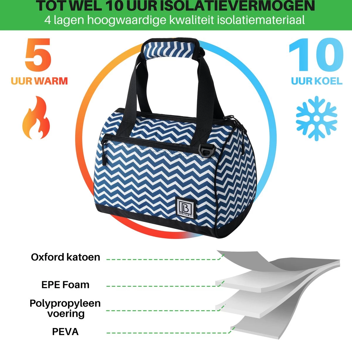 Brisby 4 Laags Geïsoleerde Koeltas – Lunchtas 10 Liter – Zigzag Blauw