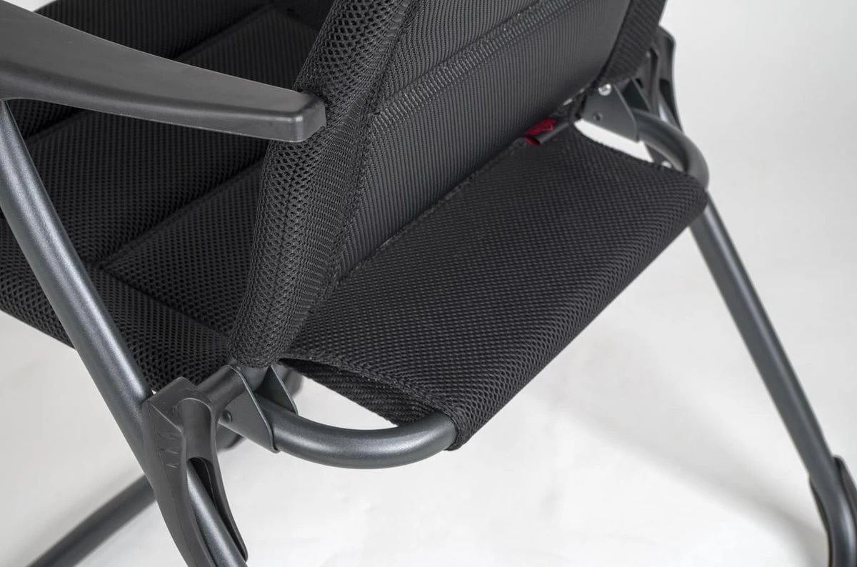 Een lichtgewicht en extra stevige aluminium standenstoel die je makkelijk kunt verplaatsen. Biedt maximaal comfort voor iedereen door de in 7 standen verstelbare rugleuning en de zachte gepolsterde 3D stof. De comfortabele vulling van deze stof is extra luchtdoorlatend en houdt door de open celstructuur geen vocht vast. Hierdoor is de stoel veel sneller droog dan stoelen met een traditionele schuimvulling en uitermate geschikt voor buiten. Daarnaast zijn zowel de rugleuning, de zitting en de armleggers ergonomisch gevormd, wat zitklachten voorkomt. De stoel is voorzien van een U-frame met extra dikke buizen en stabilisatoren die zorgen voor veiligheid en stabiliteit. Ingeklapt is deze stoel zeer compact en daardoor gemakkelijk mee te nemen.