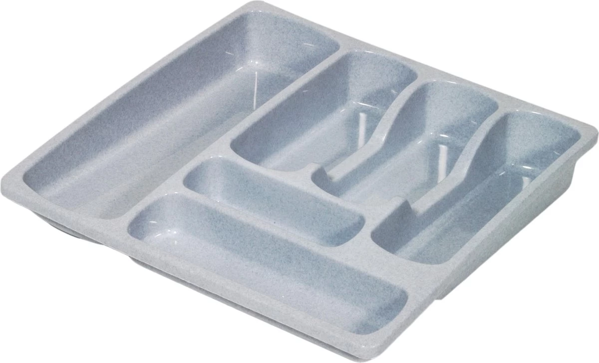 Een stevige 6-vaks bestekbak. Ideaal om bestek geordend op te bergen. Deze bestekbak bestaat uit 4 grote vakken en 2 kleine vakken. Deze vakken zijn extra breed.