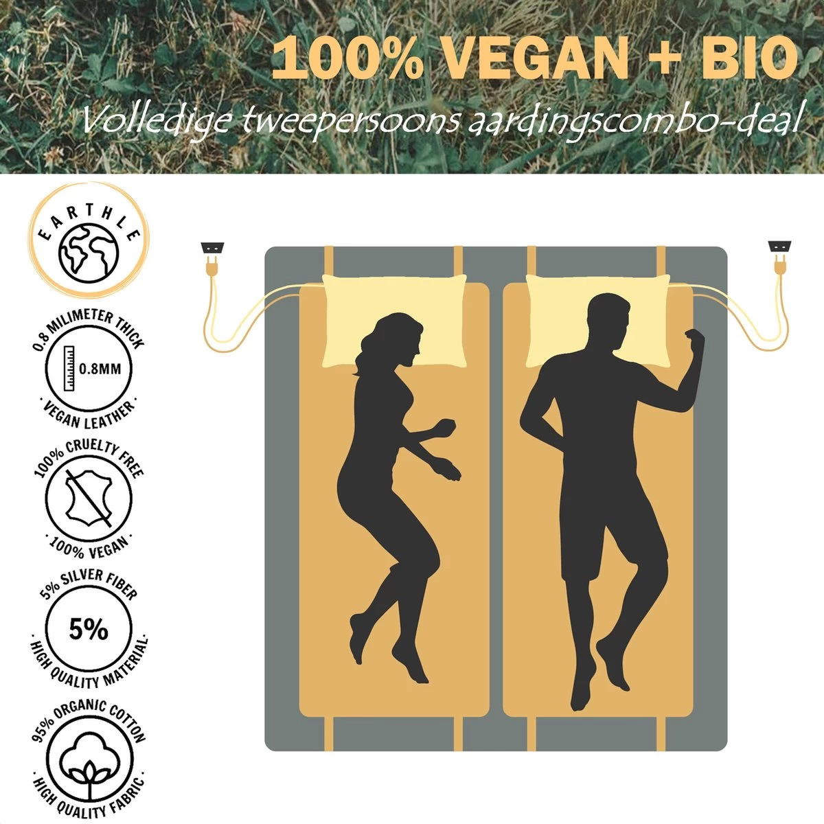 Earthle Volledige Earthing Tweepersoons Aardingsset – 2x Slaapmat + 2x Kussensloop – Aardingsmat – Aarden – Earthing Mat – Aarding – Grounding Mat – Kussensloop – Aardingskussensloop – Combo Deal