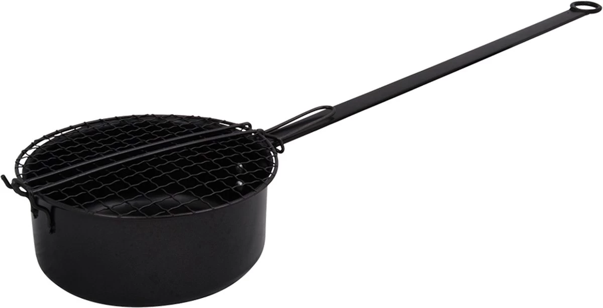Een popcornpan speciaal voor outdoor gebruik zoals tijdens een kampvuur. Met een extra lange steel zodat de pan gebruikt kan worden bij open vuur en veilige afstand biedt tot de vlammen. Gemaakt van een dunne plaat staal speciaal voor outdoor gebruik. Eenvoudig op te hangen door middel van oog aan het uiteinde van de steel. Echt voor de mensen die ’s avonds bij het kampvuur iets lekkers te eten willen hebben.
