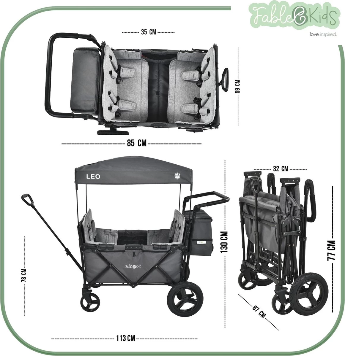Breng een mooie lentedag door met het gezin in de frisse lucht. Onze LEO is een echte allrounder onder de handkarren. Terwijl LEO met zijn uitgebreide laadruimte, de royale achtertas voldoende ruimte biedt voor excursies met de kinderen, festivals of andere recreatieve activiteiten, kan deze indien nodig compact worden opgevouwen met een handvat en opgeborgen om ruimte te besparen. Het afneembare dak biedt maximale flexibiliteit en beschermt uw kinderen betrouwbaar tegen zon- en regenbuien. Functionaliteit ontmoet verfijnd en functioneel ontwerp.