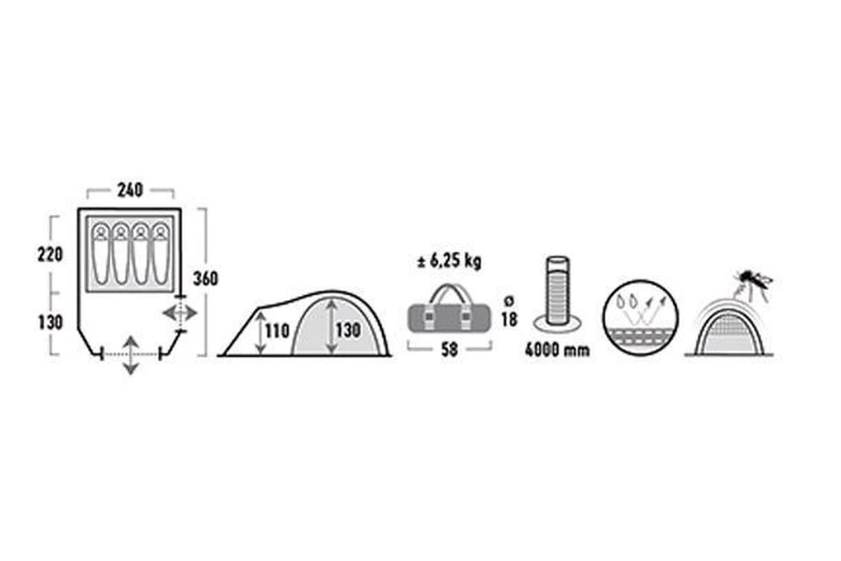High Peak Mesos 4 Koepeltent – Donkergrijs – 4 Persoons