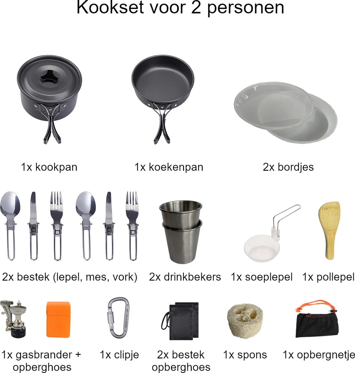 Hikr® Camping Pannenset – Complete 22-delige Kookset – Lichtgewicht – Kookgerei Servies – Outdoor – BPA-vrij – Keukengerei Set