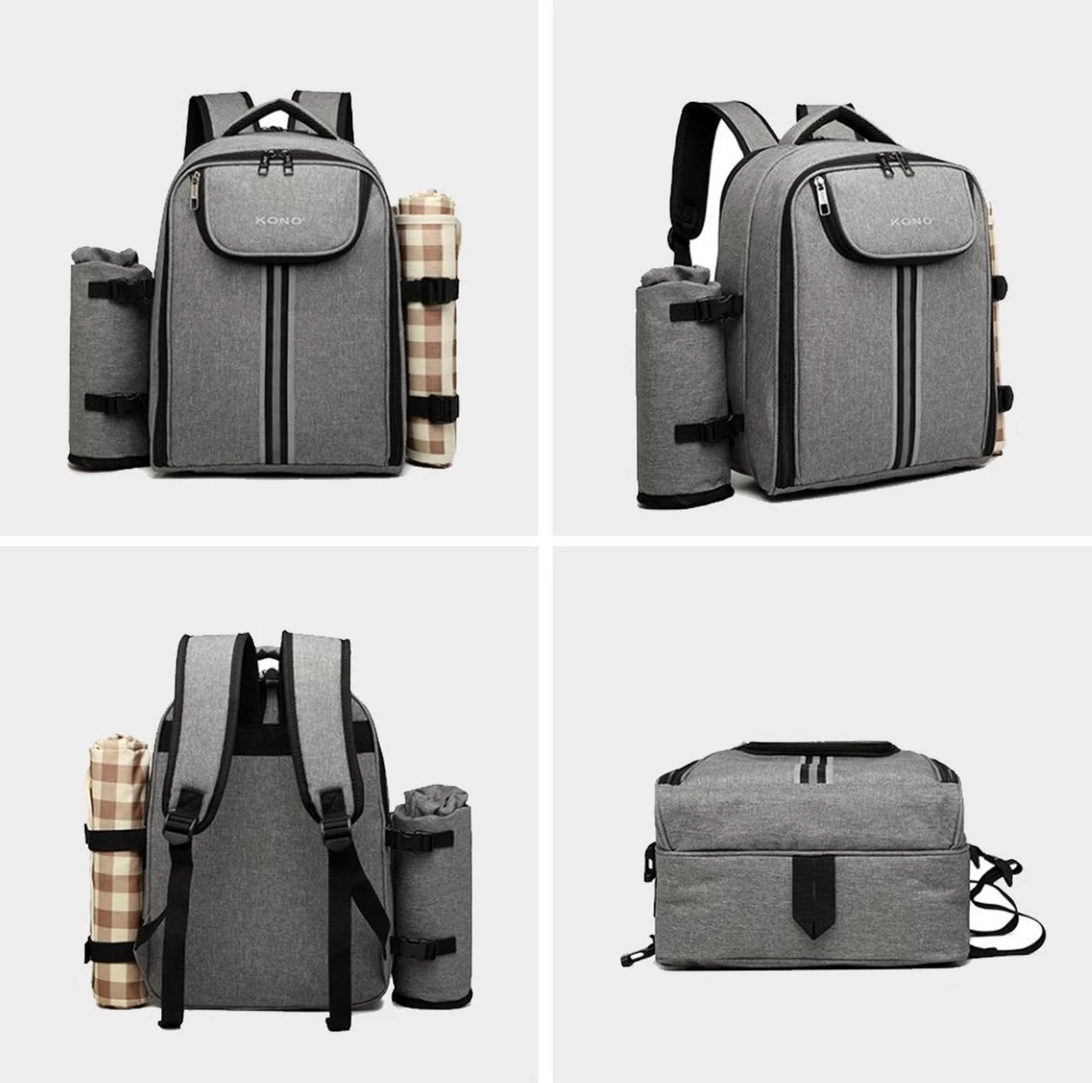 ➡️ Deze mooie en ruime picknick backpack van Kono is jouw ideale partner tijdens uitjes en weekend-trips. Een dagje naar het strand of het park? Ook dan neem je deze praktische rugtas met je mee. De tas is strak vormgegeven en voorzien van veel extra’s. Zo ben je goed zichtbaar door de reflecterende bies op de voorzijde van de tas. Deze is tevens voorzien van een klein ritsvak voor het meenemen van handige accessoires zoals een flesopener, je telefoon of portemonnee. Het compartiment aan de voorzijde is geschikt voor picknickbenodigdheden tot wel 4 personen. Dit vak kun je door de ritsopening in zijn geheel openen voor nog meer comfort.