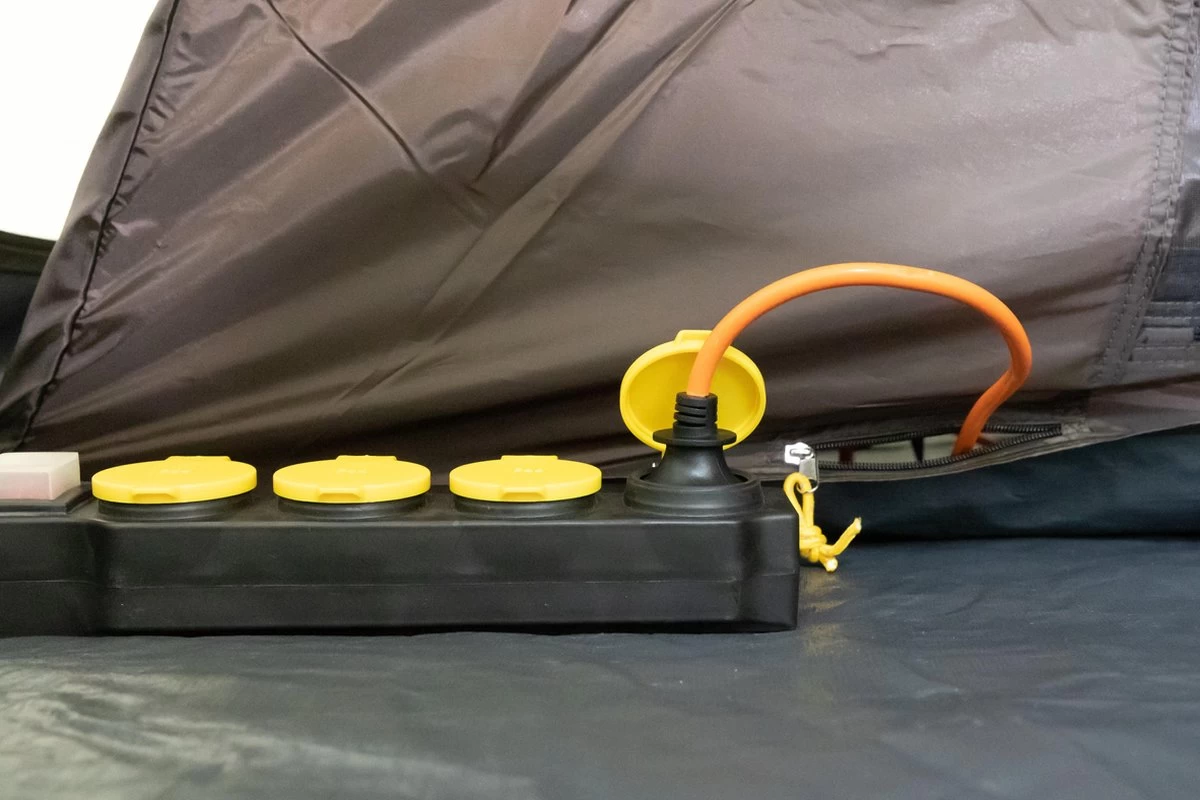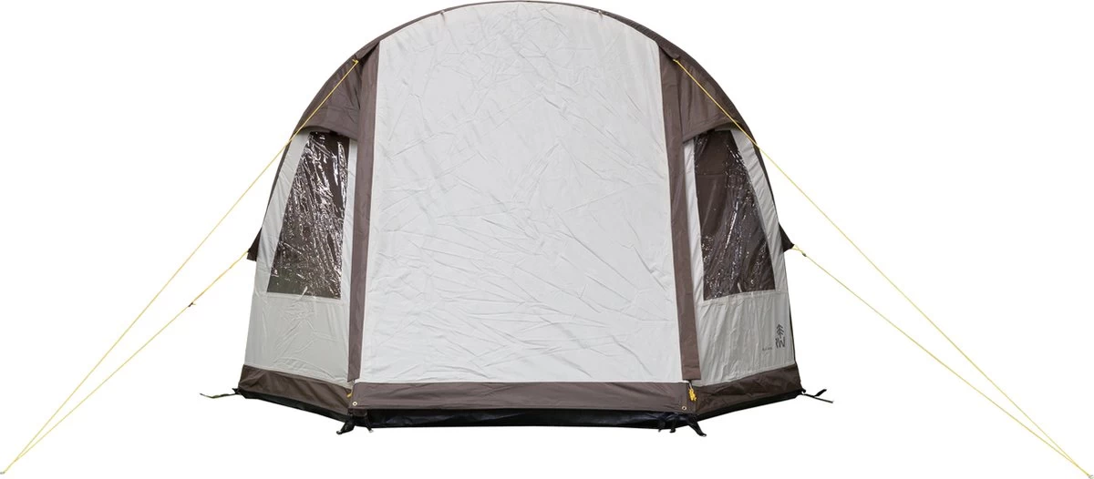 Let op! In tegenstelling tot de foto’s is de achterzijde van de tent geheel bruin, zonder de achterste twee grijze vlakken.