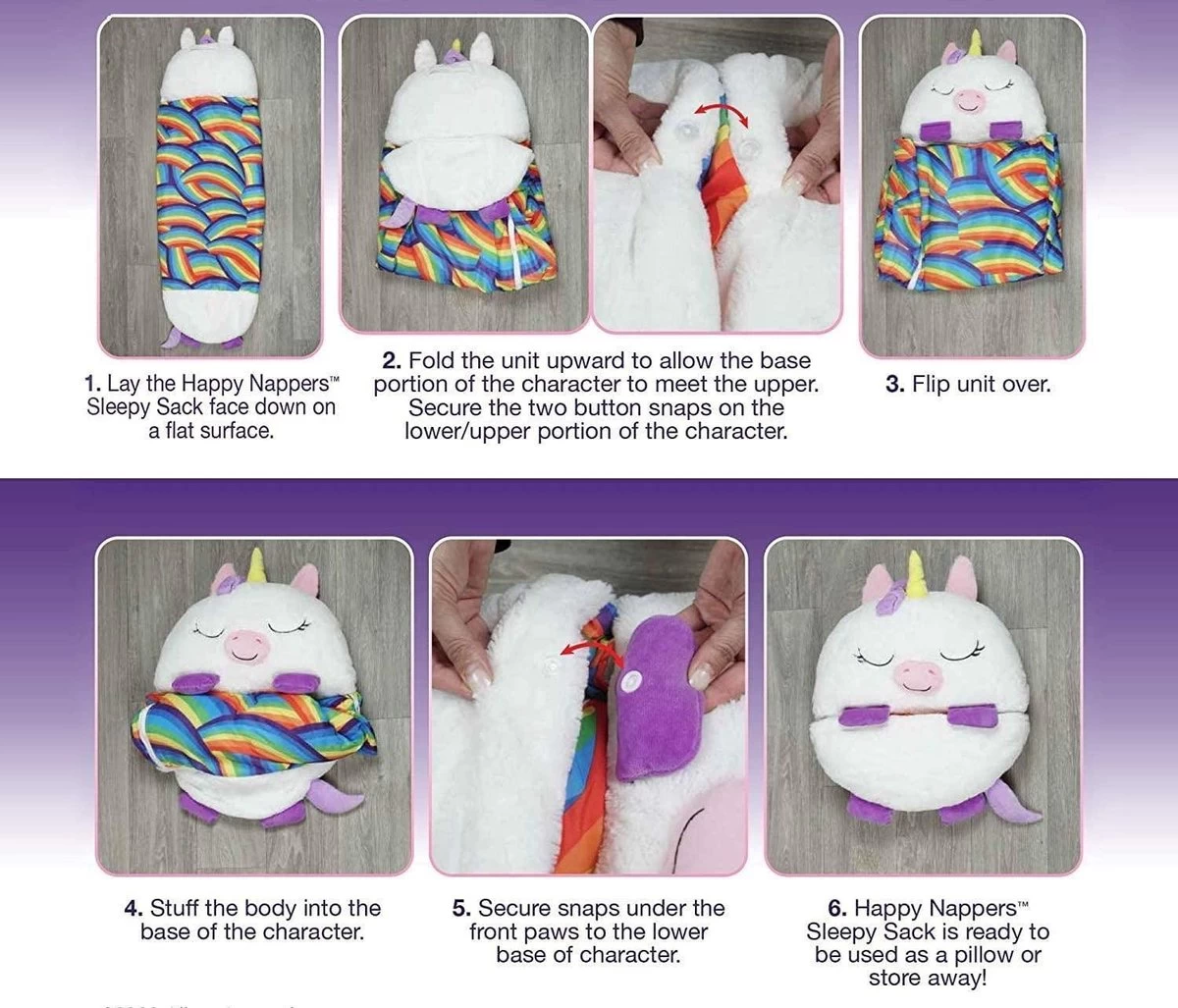 Vrolijke slaapzak voor kinderen: speelkussen slaapzak in een paar seconden verander je van een speels speelkussen in een draagbare speelslaapzak met geïntegreerd kussen. Ideaal om te overnachten met familie of hereniging met familie