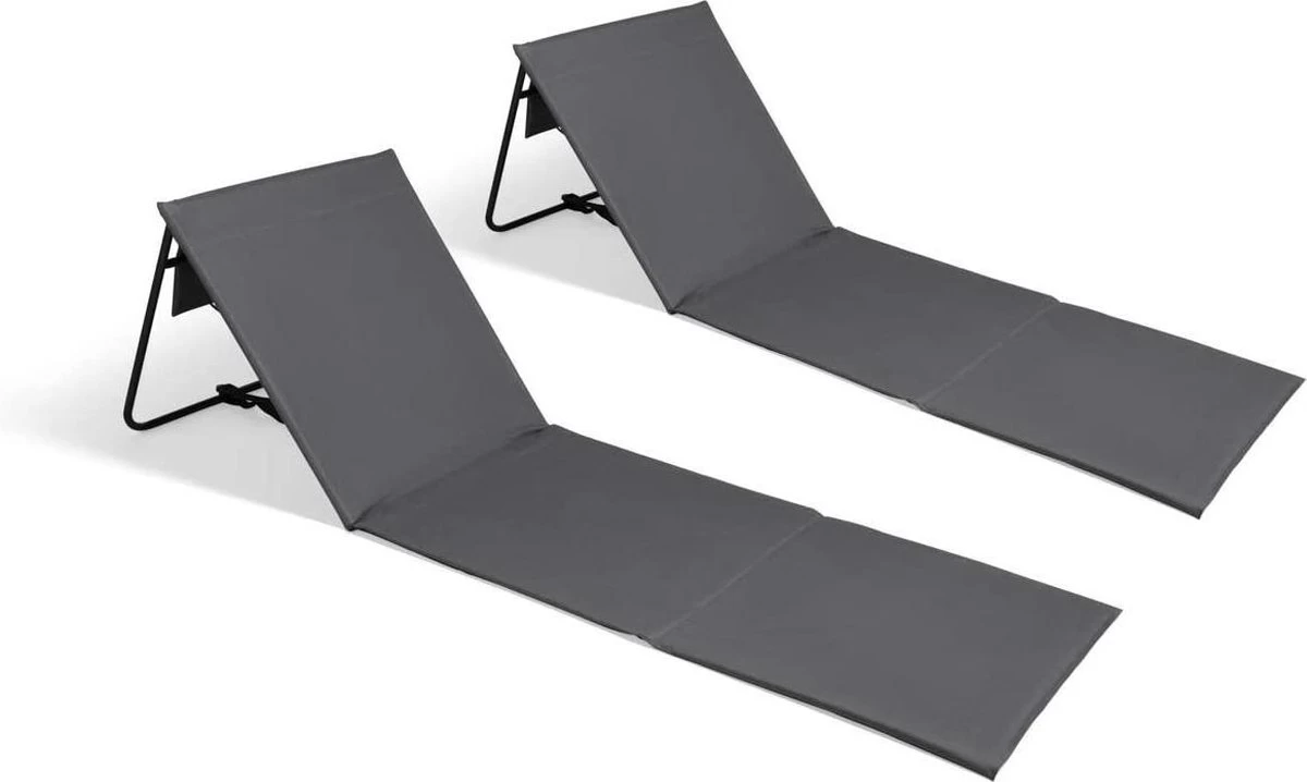 Set Van 2 Strandmatten Met Verstelbare Rugleuning – Gevuld Met Comfortschuim, Ultralicht En Opvouwbaar Om Ruimte Te Besparen – Grijs