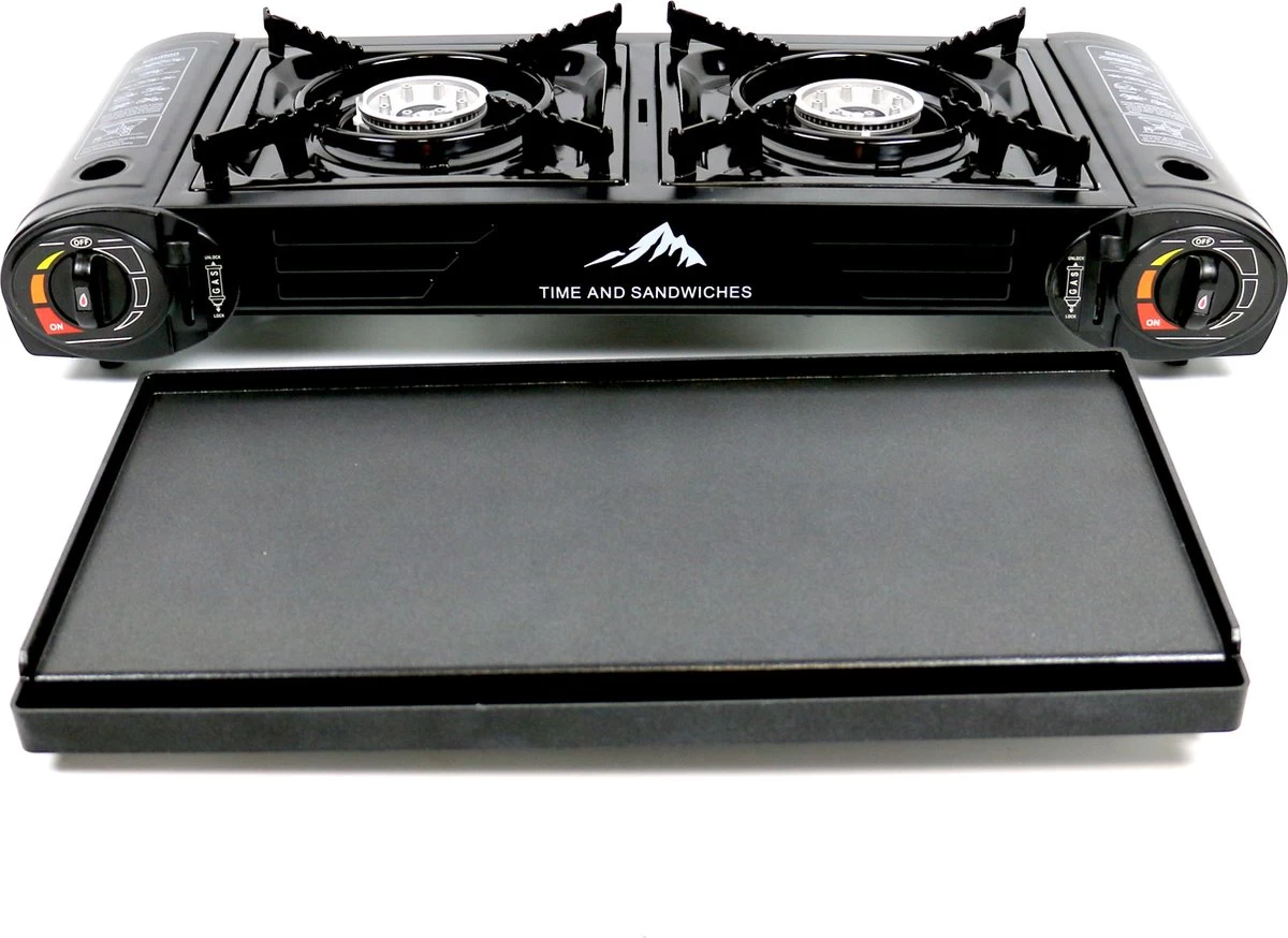 Dit is een zeer praktisch en compact dubbel gasfornuis met bakplaat.